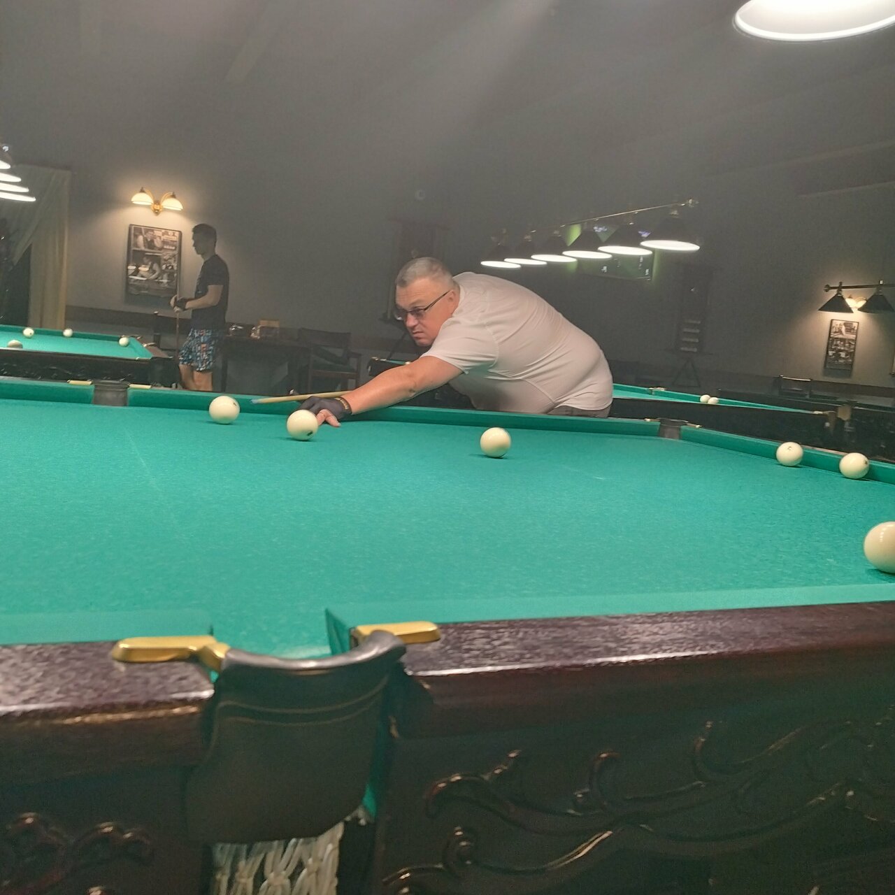 Столы среднего качества, протертые , шары коцаныне сильно. Мало света в помещение. Бар и еда нормальная. Из минусов платная парковка краснодара. А так пойдёт.